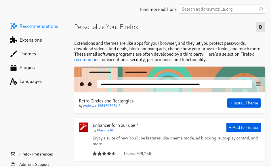 如果您不喜欢 Firefox 的标准外观和感觉,请安装新的 主题。主题不会更改功能,只会更改浏览器的外观。