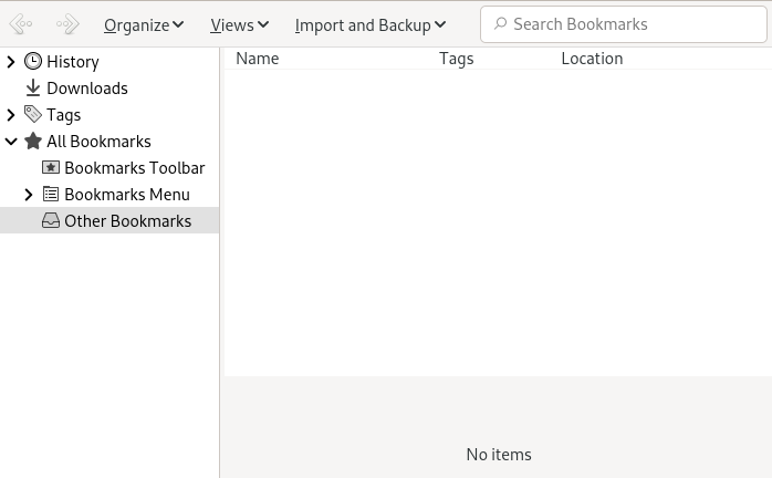 “”可用于管理每个书签的属性(名称和地址位置),并将书签组织到文件夹和部分中。它类似于 图 13.3,“Firefox 书签资料库”。