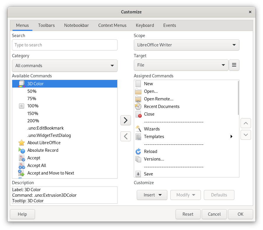 您可以自定义 LibreOffice,使其最适合您的需求和工作方式。工具栏、菜单和键组合都可以重新配置,以帮助您更快地访问您最常用的功能。