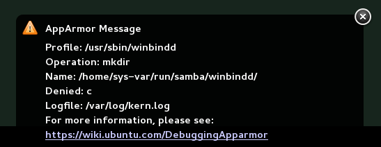 aa-notify 是一个方便的实用程序,可在您的桌面环境中显示 AppArmor 通知。如果您不想检查 AppArmor 日志文件,而是让桌面通知您有关违反策略的事件,这将非常方便。要启用 AppArmor 桌面通知,请运行 aa-notify