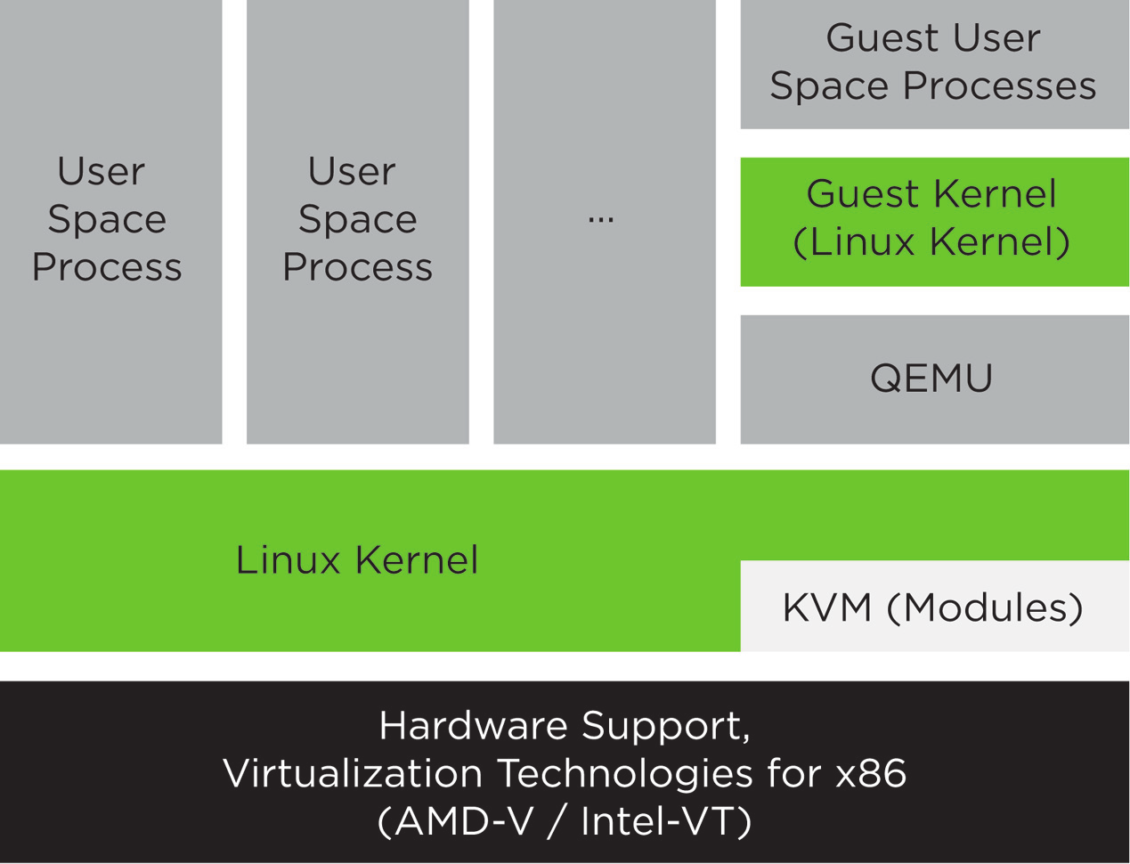 在 Xen 中,管理组件运行在一个特权虚拟机客户机中,通常称为 Dom0。在 KVM 中,Linux 内核充当虚拟机监控程序,管理组件直接运行在 VHS 上。
